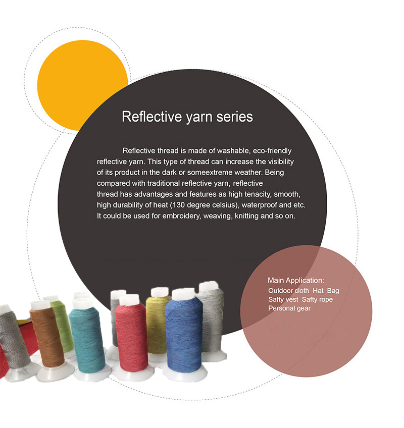 Suzhou Huamei reflective thread is made of environmentally friendly reflective materials and round hole yarn suitable for household washing. When illuminated by a light source, the finished product made of the wire can help improve visibility at night and in bad weather conditions. Compared with the reflective thread made of traditional reflective film, cherry reflective thread has the characteristics of high strength, smooth surface, 130 degree high temperature resistance and waterproof. It is suitable for embroidery, sewing and weaving.