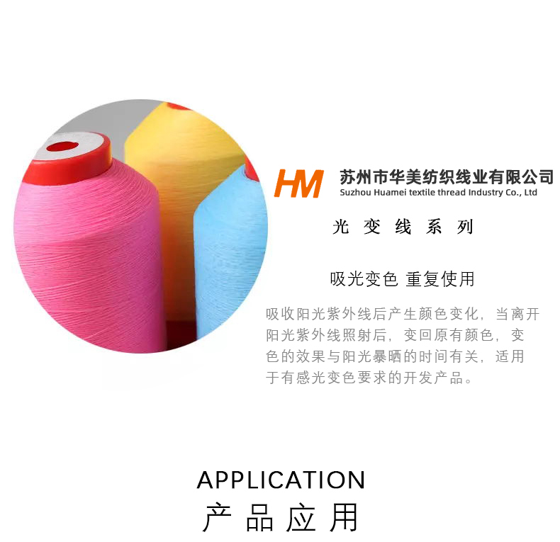 在阳光紫外线照射下,吸收阳光紫外线后产生颜色变化,当离开阳光紫外线照射后,变回原有颜色,变色的效果与阳光爆晒的时间有关,不适于在户外长期持续爆晒,产品设计适用于有感光变色要求的开发产品。 适用于织带,织绳,绣花,刺绣,商标,花边,服装,服饰辅料,鞋帽等。