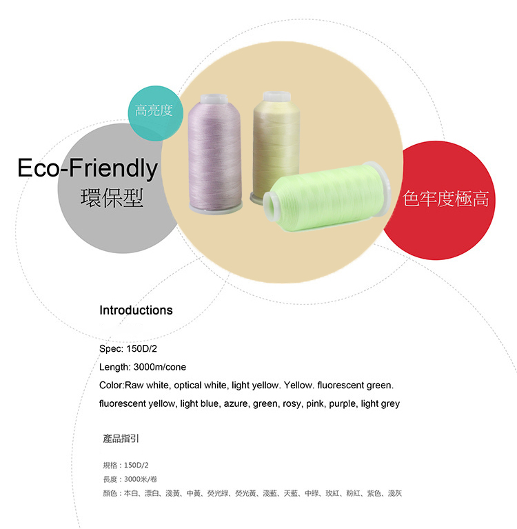 夜光绣花线之所以能在夜里发光,主要是由于线中稀土的成分,但是由于现在国内稀土越来越稀缺,夜光绣花线的价格也逐渐水涨船高,几乎只有国外品牌才会做夜光绣花线。但是我们这款涤纶夜光绣花线价格却非常亲民,在价格低的同时,能达到近乎进口夜光绣花线的标准,在夜晚能长时间持续发光,在强度、张力方面也能达到常规线的程度。 目前苏州华美夜光绣花线的现货颜色只有本白、漂白、浅黄、中黄、荧光绿、荧光黄、浅蓝、天蓝、中绿、玫红、粉红、紫色、浅灰,已经可以满足大部分客户需求。其余颜色正在开发中,之后如果有颜色更新,我们也会同步在网站上更新。当然,如有大订单,也可以定制。