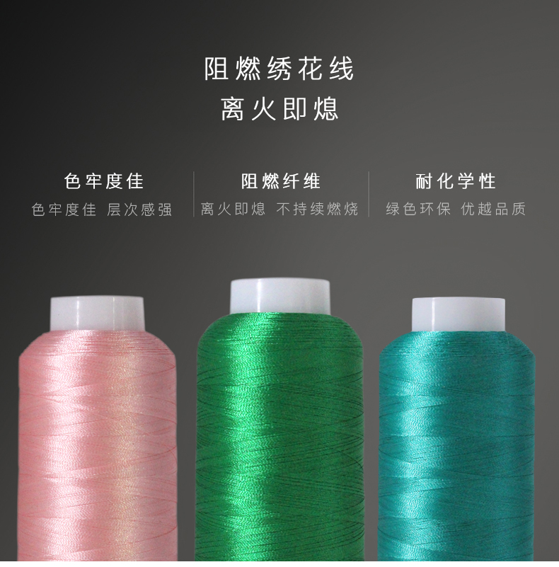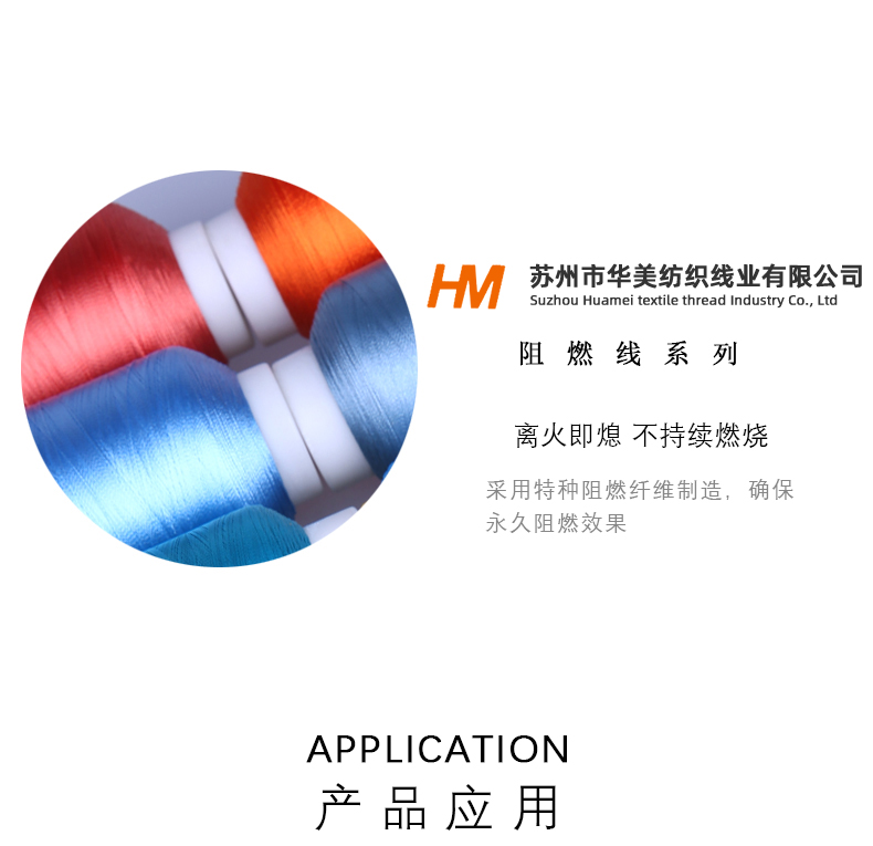 苏州华美阻燃线以优质涤纶阻燃纤维、芳纶为原料,选用环保染料及助剂,经特殊工艺加工而成,在保证高速刺绣、缝纫性能稳定的同时,添加了特有的阻燃效果,是一款专门为美国儿童睡衣易燃性标准(16CFR1615和16CFR1616)的定制产品,可满足各种有阻燃要求、高环保高质量要求的服装刺绣需要。